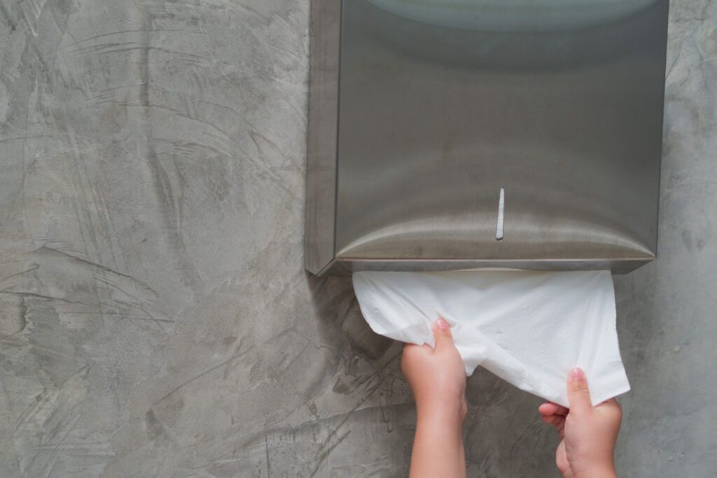 Papel higiénico industrial Scott® y Kleenex® en jumbo y pequeños rollos, soluciones eficientes para fábricas, talleres y baños de alta rotación.