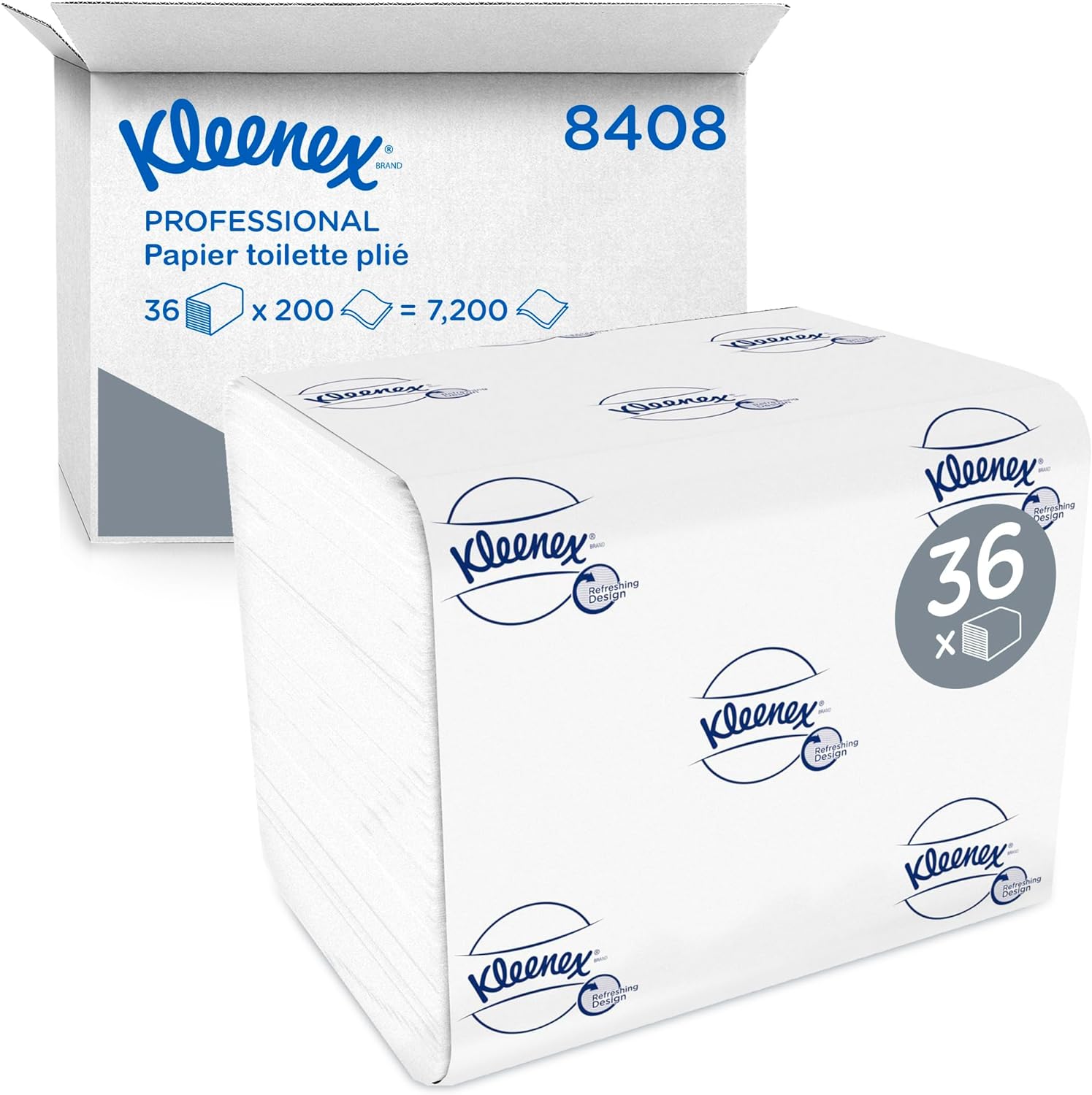 Papel Higiénico Plegado Kleenex® 8408 – 2 Capas, 36 Paquetes x 200 Hojas (7.200 Hojas en Total), Blanco, Suave y Resistente