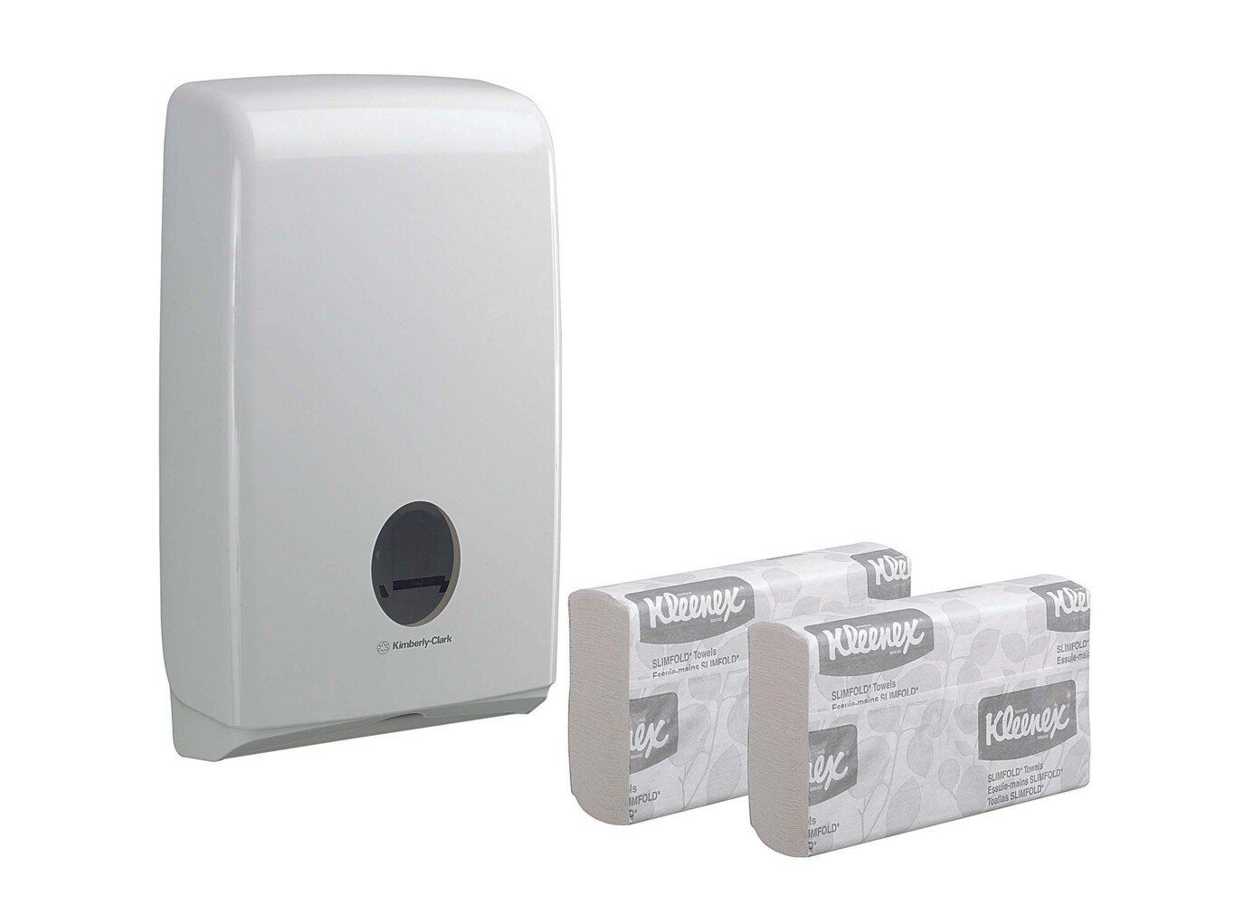 Compatible con las toallas Slimfold™ de Kimberly-Clark Professional™, incluyendo Scott® (código 5856) y Kleenex® (códigos 4442 y 7693), para asegurar un rendimiento óptimo y una experiencia de secado eficaz.