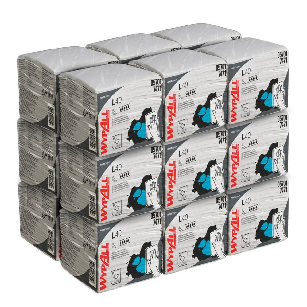 Paños extra absorbentes WypAll® L40 7471 – Paños desechables – 18 paquetes x 56 paños blancos plegados en cuatro partes (1008 paños de papel en total)