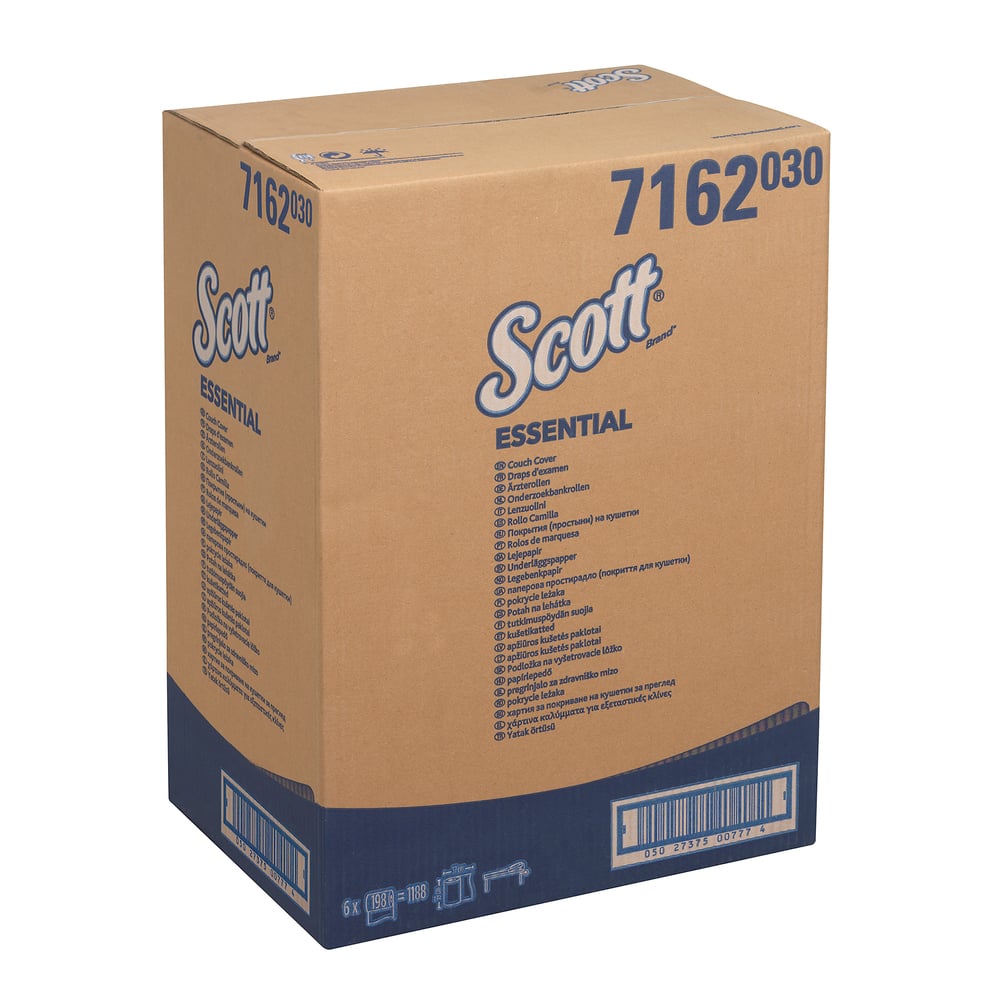 La gama de cubrecamillas Scott® Essential™ se ha diseñado para proporcionar a los clientes la combinación perfecta de valor y versatilidad al proteger camillas en el sector sanitario. El cubrecamillas Scott® Essential™ (59 de ancho) 7162 es suave, absorbente, resistente a los desgarros y duradero. Estos cubrecamillas se proporcionan en un rollo ligero, portátil y fácil de quitar y poner. Tamaño de hoja individual: 37 cm (L) x 59 cm (An).