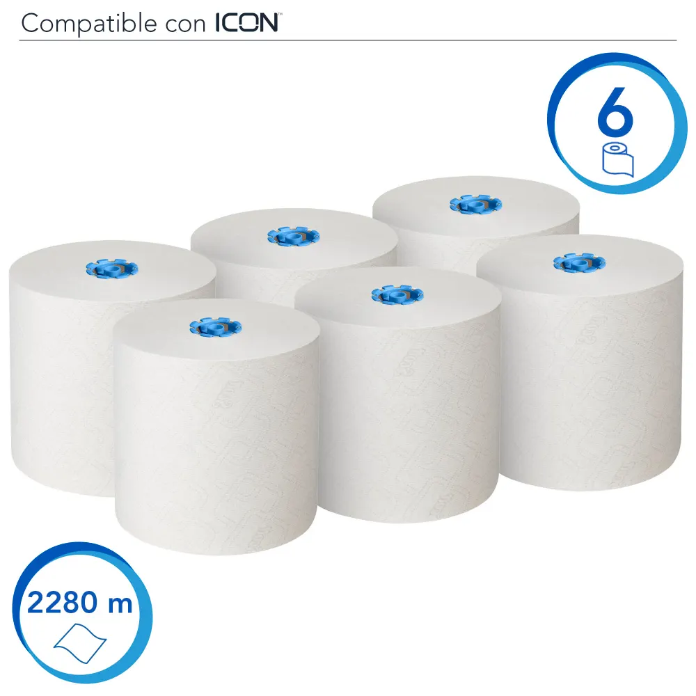 Toallas secamanos en rollo Scott® Essential™ 6638 – Rollo de toallas de papel E-Roll Grande – Rollos de toallas de papel blanco 6 x 380 m (2280 m en total)